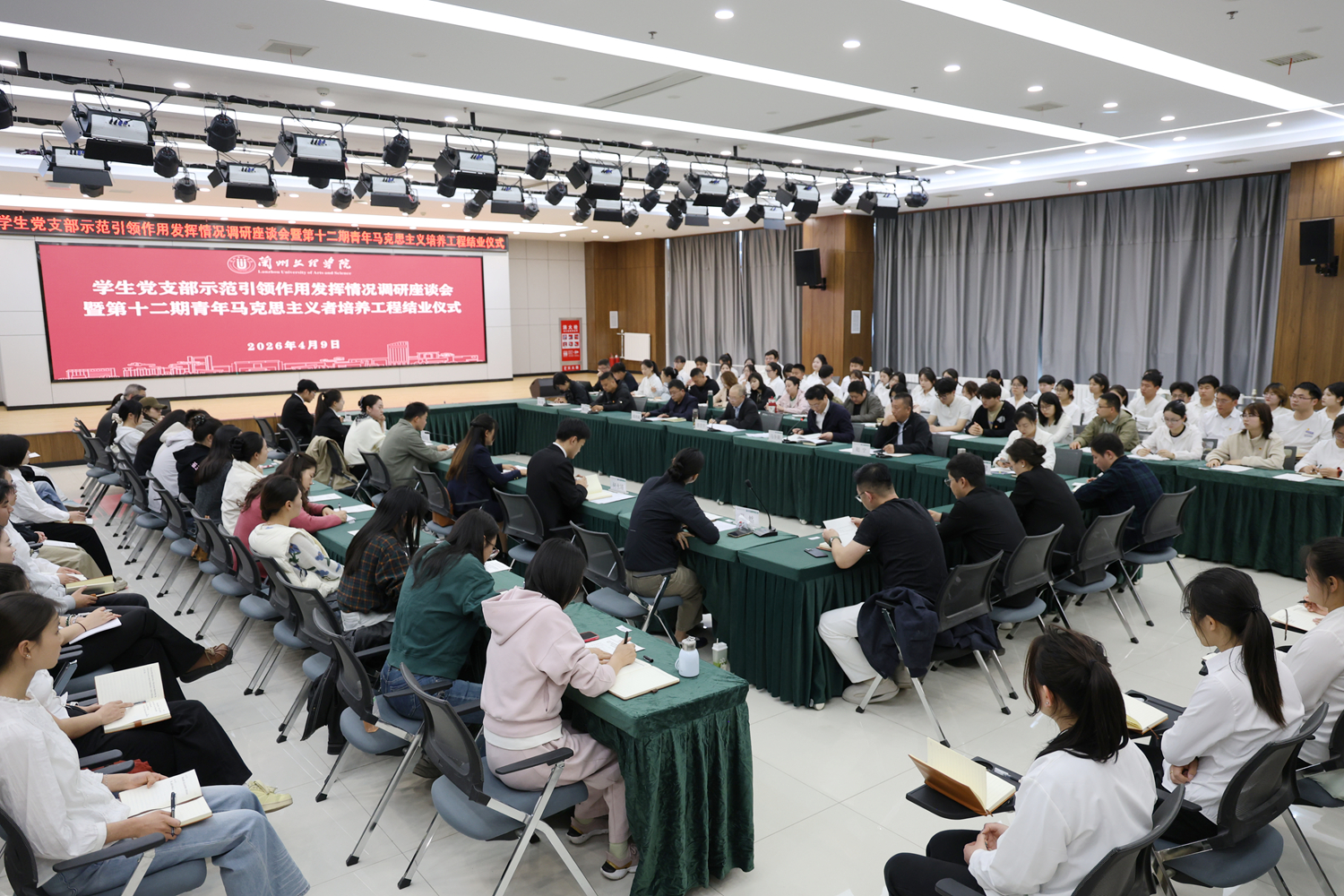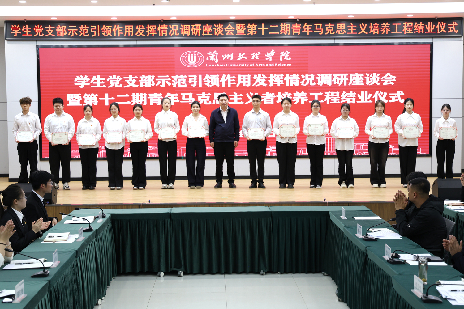 学校党委宣传部、学生工作部、团委负责人,学生党支部书记、组织员、团学办负责人、学生党员及青马学员代表围绕强化党员思想引领、强化学生党支部引领、为党输送合格后备军等方面进行了交流发言,为第十二期青年马克思主义者培养工程班颁发了结业证书。